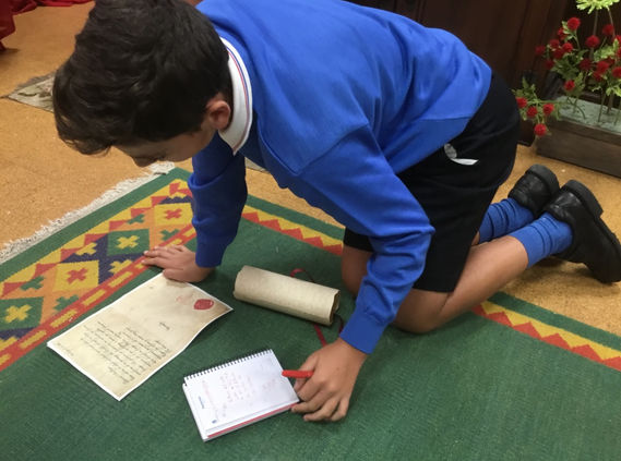 Tendrán que descifrar el mensaje oculto en letras de colores para saber lo que se les pide en relación con la carta: “¿Cuántas faltas de ortografía hay en la carta? Ayúdate de un libro.”